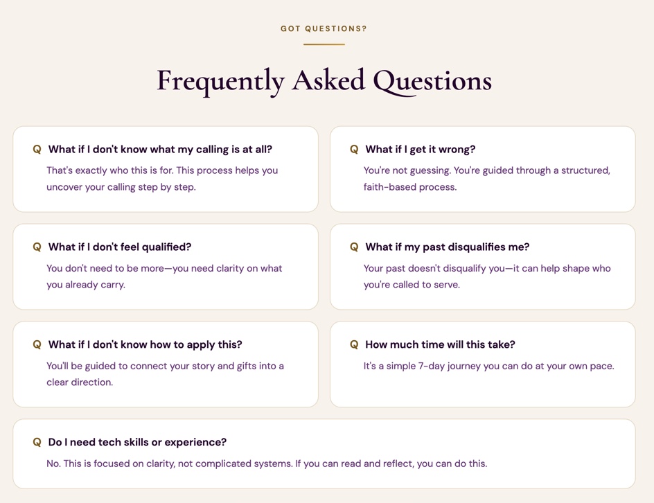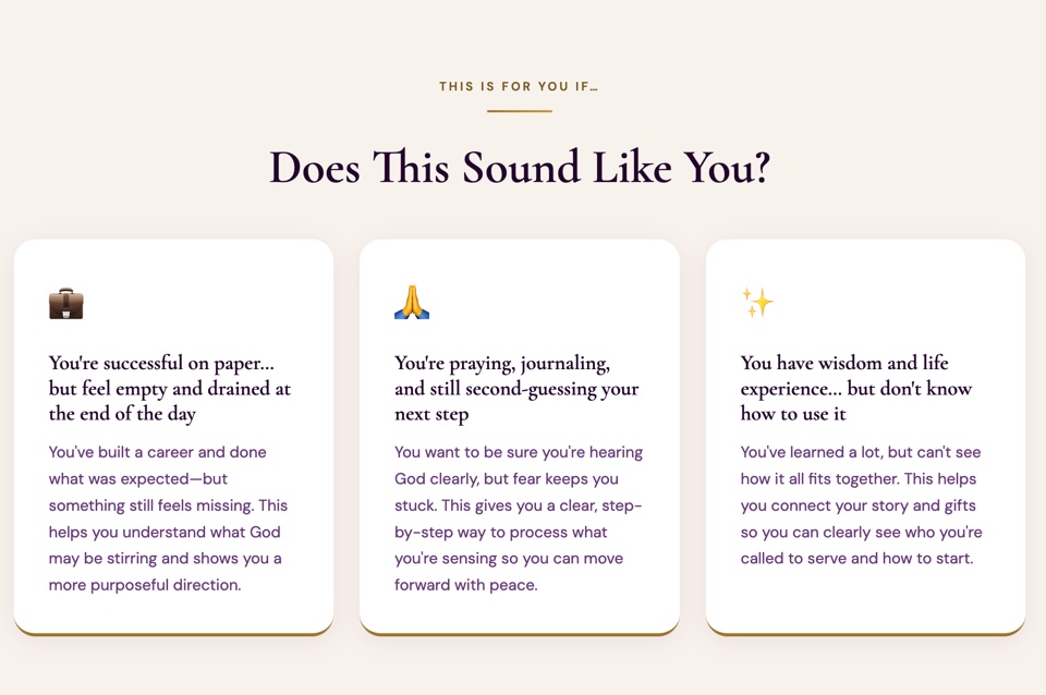 ❌ years trying to understand how your gifts and story connect to purpose